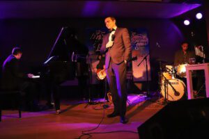 El “Negro” Falótico brindó un brillante recital en el escenario del auditórium de la mencionada institución, contando con el acompañamiento de los músicos Matías Alvarez (piano, arreglos y dirección), Augusto Argañaraz (batería) y Matías Marquesano (bajo)