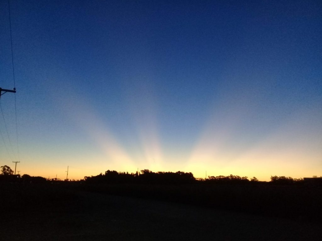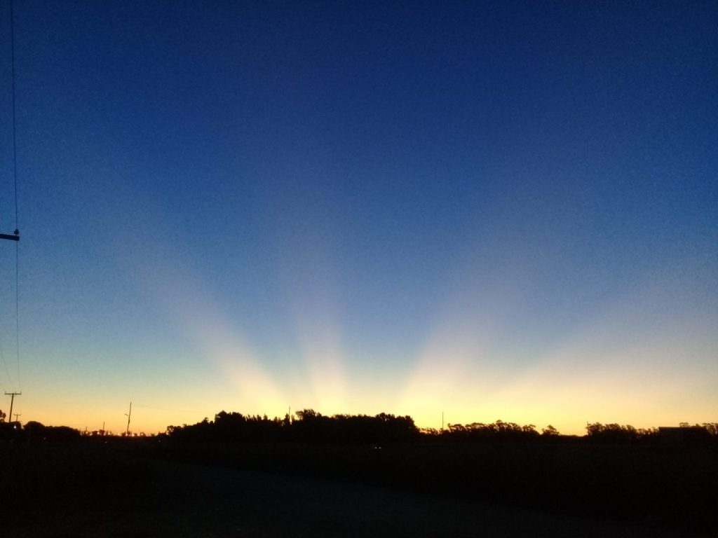 Rayos pálidos, rosados o rojizos que se irradian desde el horizonte. Estos son a menudo confundidos con los pilares de luz y esto fue lo que sucedió en la tarde del último domingo.