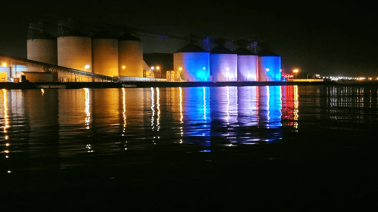 Como en cada fecha especial, los silos toman colores alusivos y este 17 de agosto no es la excepción.