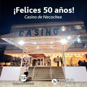 Desde Lotería y Casino de la Provincia de Buenos Aires celebran hoy los 50 años de la fundación del Casino de Necochea.