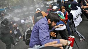 Hubo gritos, corridas, empujones, golpes, gases lacrimógenos, pedradas y algunos manifestantes resultaron heridos.