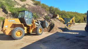 Con un trabajo coordinado entre el personal del área de Servicios Generales del Ente portuario y empresas locales, se procedió a la limpieza mediante dos palas mecánicas y tres camiones volquetes, sobre la Avenida 2 de Necochea, desde la calle 63 hasta el acceso de la Escollera Sur.