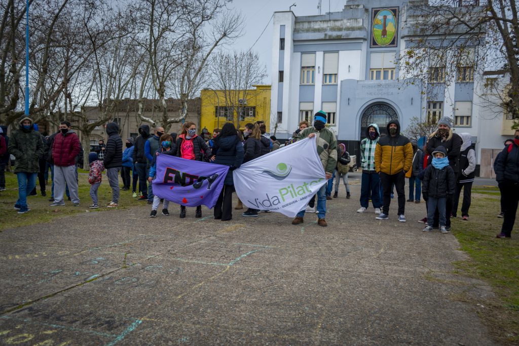 Convocados por Matías López, la marcha y reclamo transcurrió de manera normal y pacifica aunque quienes no estaban muy conformes eran los propietarios y trabajadores delos recintos de futbol 5, 6 y 7 que no se les habilitó aun y con la presencia del director de deportes Adrián Buño el intercambio de palabras en algunos momentos subía de tono y se tornaba áspero, aunque siempre en el marco del respeto y sin cometer ningún exceso pero la tensión estaba en el aire por la lógica desazón de algunos sectores no puedan aun trabajar.