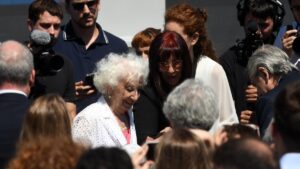 También prometió que no dejará que “en la Argentina una vez más se diga que los derechos humanos son un negocio” -como señaló Macri durante su gestión- ya que “el dolor de estas madres y estas abuelas no son un negocio” sino “la verdad viviente de lo que debimos pasar en esta argentina macabra”.