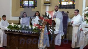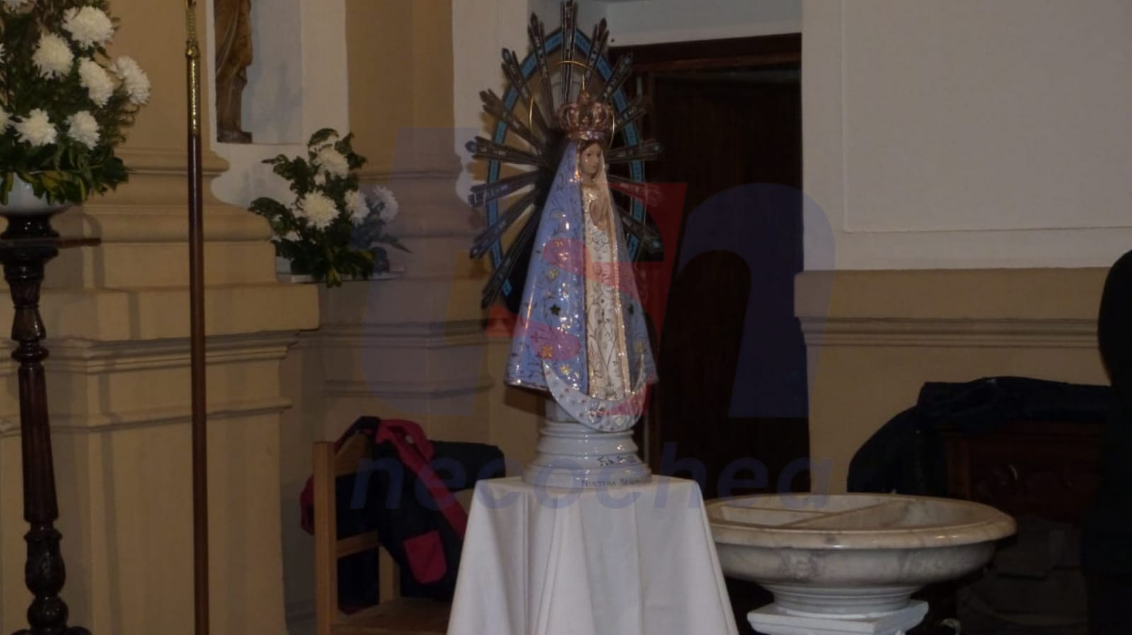 La virgen de Luján que estuvo en la guerra de Malvinas, llegó ayer a Quequén donde se realizó una misa en su honor en la iglesia Nuestra Señora de la Merced.