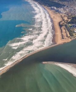 El mar y el río mezclándose en la escollera sur; la costa extensa, azul y verde con el parque subrayando la arena; los cordones de médanos y las olas marcando un paréntesis donde empieza el infinito.