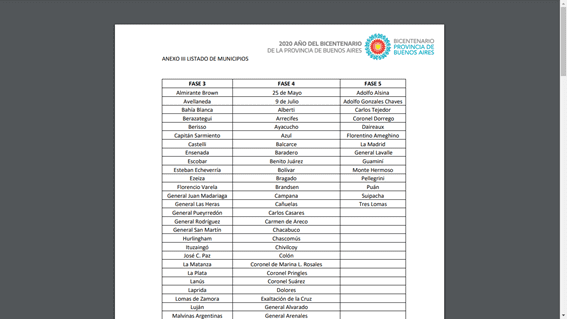 Provincia dio a conocer hoy el nuevo listado de fases en cada municipio según los avances de contagios de coronavirus, Nuestra ciudad se mantiene en la Fase 4.