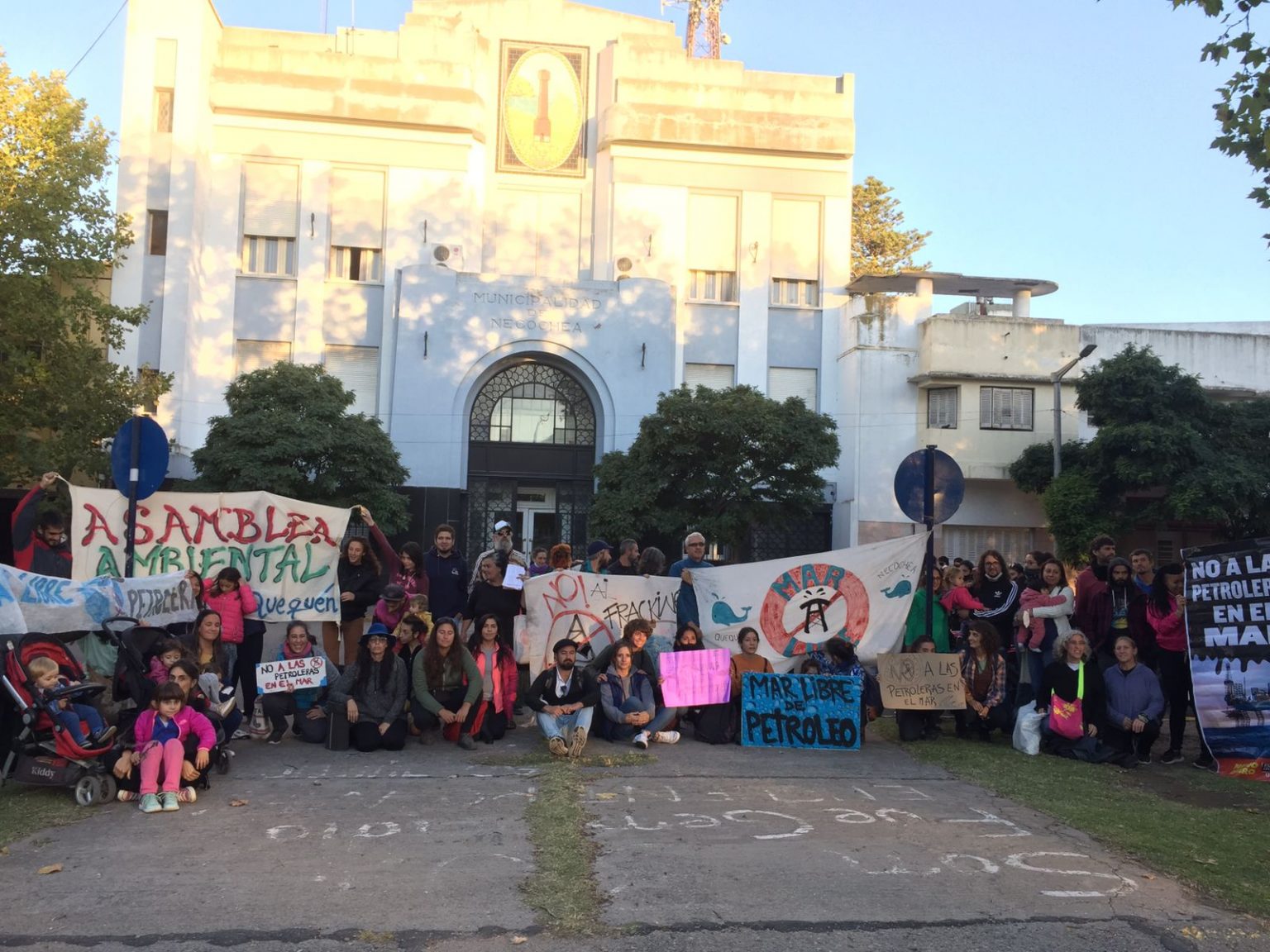 La plaza Dardo Rocha fue el lugar elegido para una nueva concentración con el fin de poder frenar el proyecto de exploración y explotación petrolera sobre nuestras costas.