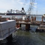 En paralelo, se realizan tareas de acondicionamientos del sitio 12, con nuevos Dolfins, plataformas de transferencias, y se ha incorporado al proyecto original la construcción de un cuarto muelle de atraque, que posibilitará la recepción de buques de mayor eslora y la realización de embarques de pellets.