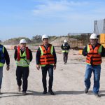 El presidente del Consorcio de Gestión de Puerto Quequén Arturo Rojas, recorrió las obras junto al gerente del Ente portuario, Oscar Morán, y el jefe de obra, Arq. Julio Pazzi, constatando el grado de avance de los trabajos para la construcción de la nueva terminal de fertilizantes sólidos y líquidos y el nuevo muelle de ultramar en los giros 11 y 12 de la margen Necochea.