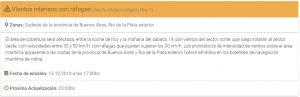 El Servicio Meteorológico Nacional (SMN) emitió este viernes un alerta meteorológico para el sudeste de la provincia de Buenos Aires por vientos intensos con ráfagas.