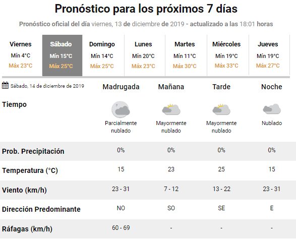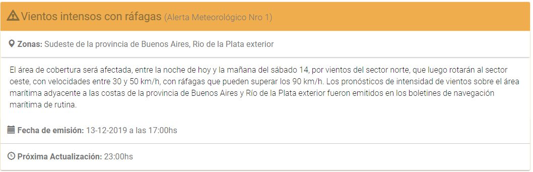 Según se informó en el parte oficial, el área de cobertura (sudeste de la provincia de Buenos Aires y Rio de la Plata exterior) será afectada -entre la noche de este viernes y la mañana del sábado- por vientos del sector norte, que luego rotarán al sector oeste, con velocidades de entre 30 y 50 kilómetros por hora y ráfagas que pueden superar los 90 km/h.