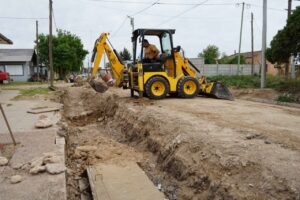 En Los Malvones el avance de las obras de cordón cuneta, tendido eléctrico, red de agua potable y cloacas, iluminación Led y construcción de una nueva plaza recreativa ya está llegando al 70%.