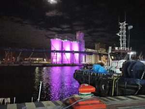 Declarado por la OMS Mes de Sensibilización sobre el Cáncer de Mama, los silos de Puerto Quequén se iluminan de rosa para tomar conciencia sobre la importancia de los controles periódicos y la detección precoz.