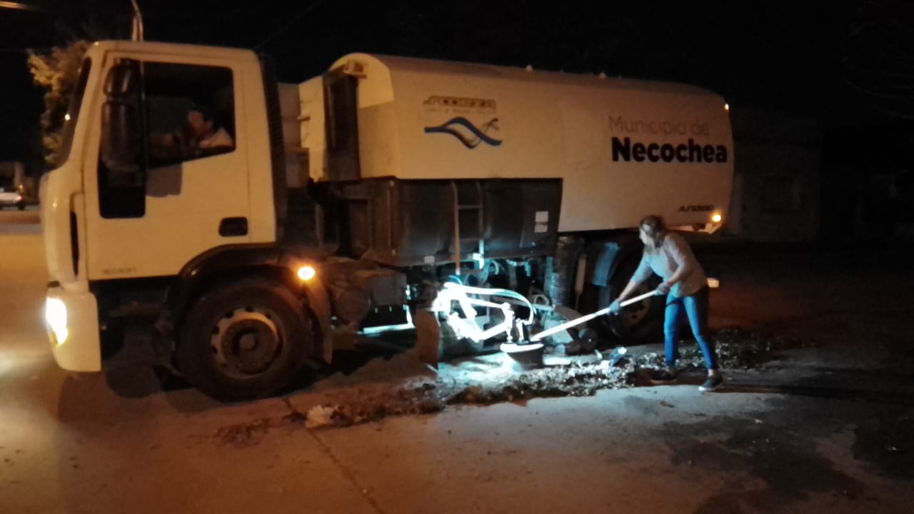 Asimismo, informó que se hacen las tareas de lunes a viernes a medida que el clima lo permite, y además del horario nocturno también la barredora continúa en tareas hasta las 8 de la mañana.