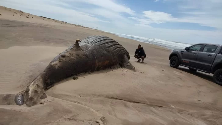 Según informó el ambientalista Carlos Leo, es una de las ballenas más grandes del planeta, los adultos tienen una longitud de 12 a 16 metros y un peso aproximado de 36 Tns. Es un animal acrobático que con frecuencia se impulsa sobre la superficie para luego golpear el agua.