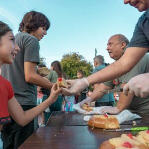 El broche de oro fue la rosca de Pascua Gigante, que se logró con el aporte de panaderos y comerciantes de la ciudad, pudiendo concretar un total de 140 metros de pastel que degustaron los presentes.