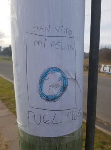 “¿Han visto mi pelota? Fugl 1160”, escribió Benicio en un cartel que fue subido a las redes por su madre, Marisa Miranda y que logró viralizarse rápidamente.