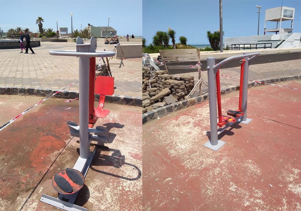Por otra parte, también el personal de Espacios Públicos estuvo abocado a la reparación y pintura de aparatos de gimnasia en la rambla municipal, y a la decoración de maceteros en bajadas públicas, plantación en la base de Guardavidas y diversas tareas de limpieza y reparación en la villa balnearia.