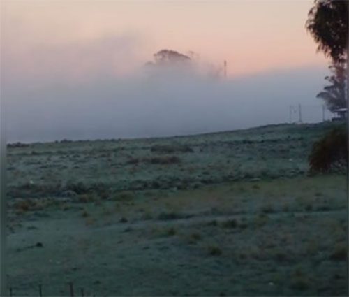 La mañana de este martes amaneció con temperatura bajo cero. -1.5 marcaban los termómetros y la helada se hizo visible en los paisajes de la ciudad.