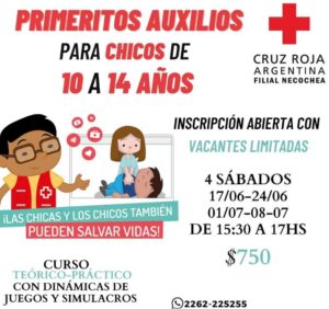 La Cruz Roja de nuestra ciudad abrió la inscripción para un curso de primeros auxilios destinado a menoras de 10 a 14 años, bajo el lema “Los niños y niñas también pueden salvar vidas”.