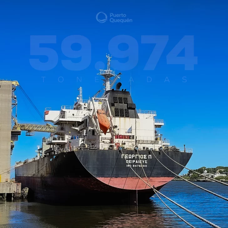 En una semana de gran actividad, el puerto quequénense se consolidó como uno de los principales puntos de salida de productos agrícolas del país. Un total de 59.974 toneladas de mercadería fueron embarcadas en cuatro buques con destino a Brasil, Malasia, Nueva Zelanda y Países Bajos.