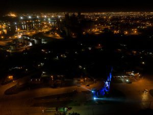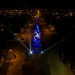 Con motivo de la conmemoración del 20º aniversario de la inauguración del monumento a los combatientes y caídos en la Guerra de Malvinas, emblema de la Avenida Almirante Brown de Quequén, este miércoles 9 de octubre, el Consorcio de Gestión de Puerto Quequén lo dotó de iluminación con los colores celeste y blanco, honrando a los héroes de la Patria.