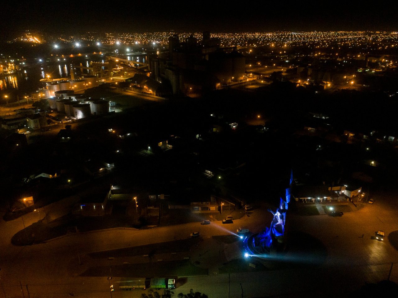 El presidente del ente portuario, Arturo Rojas, explicó que “del mismo modo que desde enero, en lo que se conoce como La Nueva Postal, durante las noches de las fechas patrias los silos de nuestra estación marítima son iluminados formando la bandera argentina, en el marco del programa Puerto Ciudad, haremos lo propio con el monumento emplazado en las cercanías del acceso a nuestras instalaciones y las terminales portuarias”.
