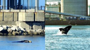 Las ballenas parecen haber elegido a Puerto Quequén como punto de descanso y recreo. Sumándose a las dos colonias de lobos marinos, hace unos años ya forman parte, aunque de manera pasajera y estacional, de la fauna marítimo portuaria. Todo parecería indicar que vecinos y turistas podrán disfrutar de su avistaje en los próximos años.