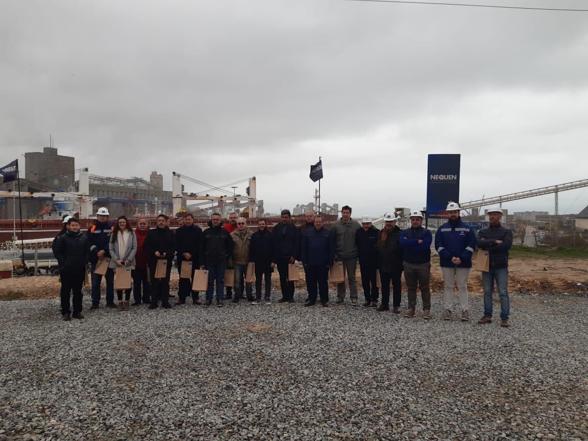 En este sentido, se dirigieron a la margen Necochea, para vivenciar en primera persona las aptitudes del Área Logística, visualizando los aerogeneradores con el acompañamiento de Darío Rodríguez, presidente de Nequén, operador logístico de la nueva terminal multi propósito de Puerto Quequén.
