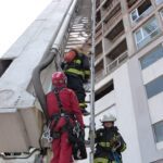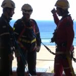 Fue en la construcción de un edificio de avenida 2 entre 83 y 81, donde los participantes debieron subir hasta el piso siete y efectuar las tareas de un rescate en altura mediante el hidroelevador.