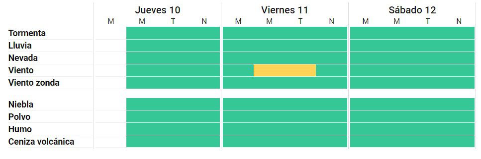 Según el organismo, nuestra zona podría verse afectada por vientos del sudoeste con velocidades entre 35 y 50 km/h, y ráfagas de hasta 75 km/h.