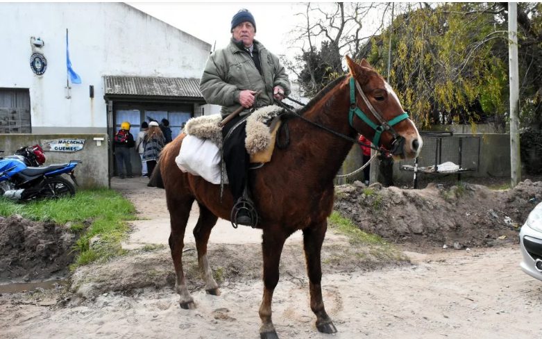El domingo de las elecciones empezó más temprano para Ernesto García que para la mayoría de las votantes. El gaucho, de 66 años, se despertó a las 4 de la mañana, tomó unos mates, se preparó, alimentó a su caballo, “Chiquito”, y salió de la quinta en la que trabaja hacia la Escuela Rural N° 8, a la altura del kilómetro 16 de la Ruta 226.
