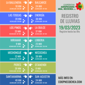 La Cooperativa Agropecuaria General Necochea dio a conocer el reporte de registros de lluvias registradas ayer en la zona.