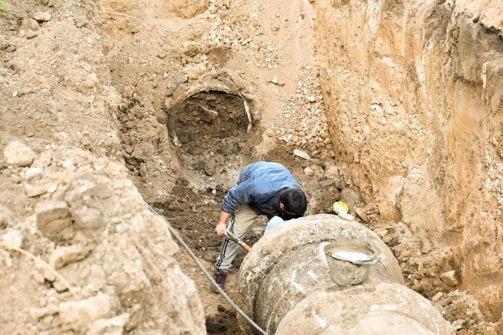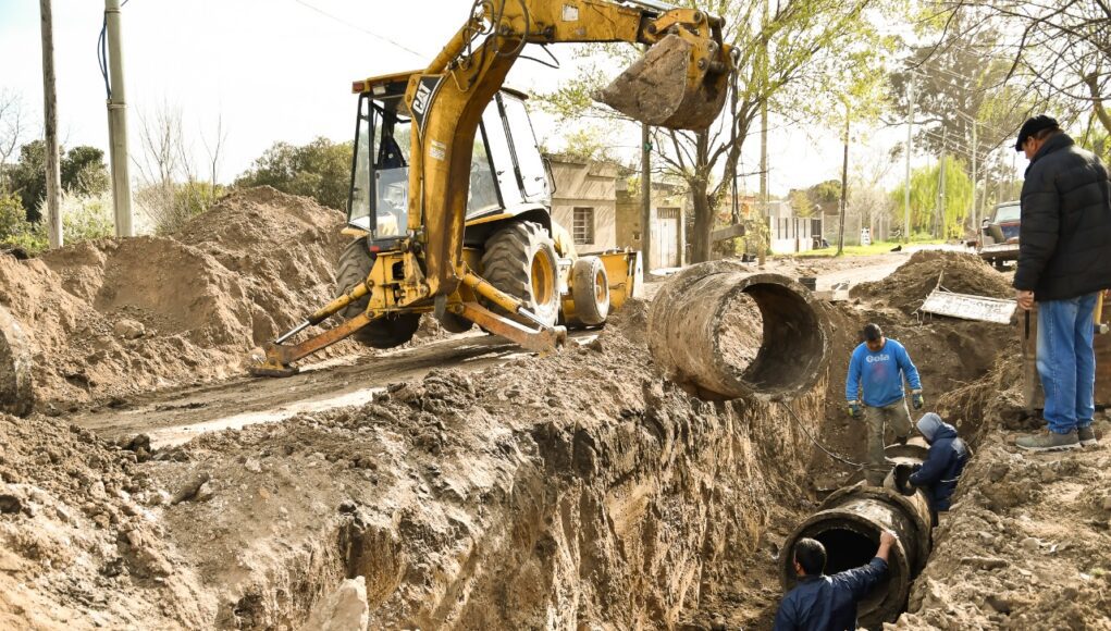 Luego de un profundo zanjeo y trabajando actualmente en el último tramo de las tuberías ubicadas en la calle 62 entre Avenida 91 y calle 89, apoyados por maquinaria pesada, los operarios de la comuna se ocupan de retirar, una por una, las pesadas piezas de hormigón totalmente tapadas para proceder a su desobturación y volver a colocarlas con la pendiente correspondiente, procurando evitar que vuelvan a sufrir el mismo desperfecto.
