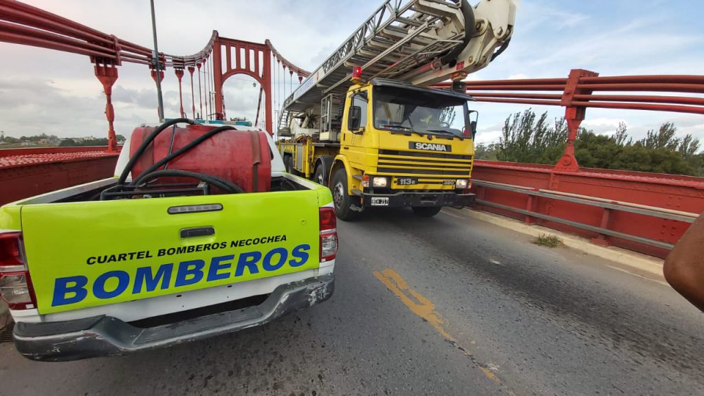 Dramático momento se vivió esta tarde en el puente colgante cuando una joven de alrededor 25 años se subió a uno de los arcos y amenazó tirarse.