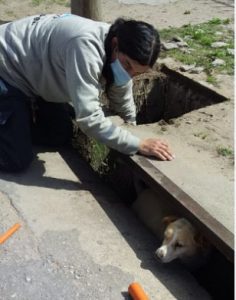 En el día de hoy, personal de Defensa Civil, rescató a un can que se había caído en una alcantarilla en 67 y 76.