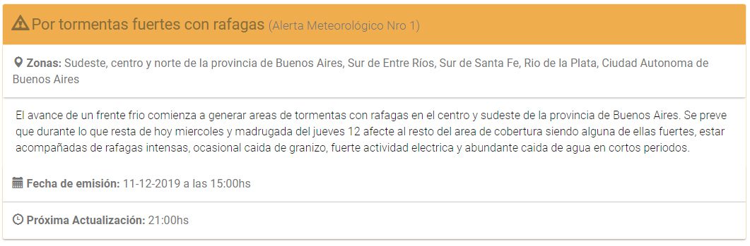 El Servicio Meteorológico (SMN) emitió un aviso de corto plazo para Necochea y Quequén, que incluye un frente que avanza de este a oeste con tormentas fuertes, posible caída de granizo, ráfagas de vientos y lluvias.