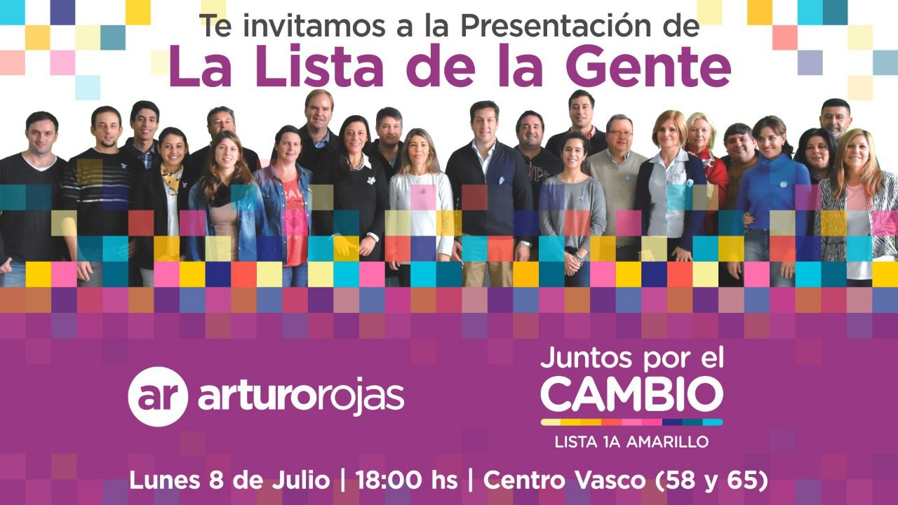 El precandidato a intendente por Juntos por el Cambio, Arturo Rojas, realizará el próximo lunes, a partir de las 18, un acto en el Centro Vasco para presentar oficialmente lo que él llama “la lista de la gente”.
