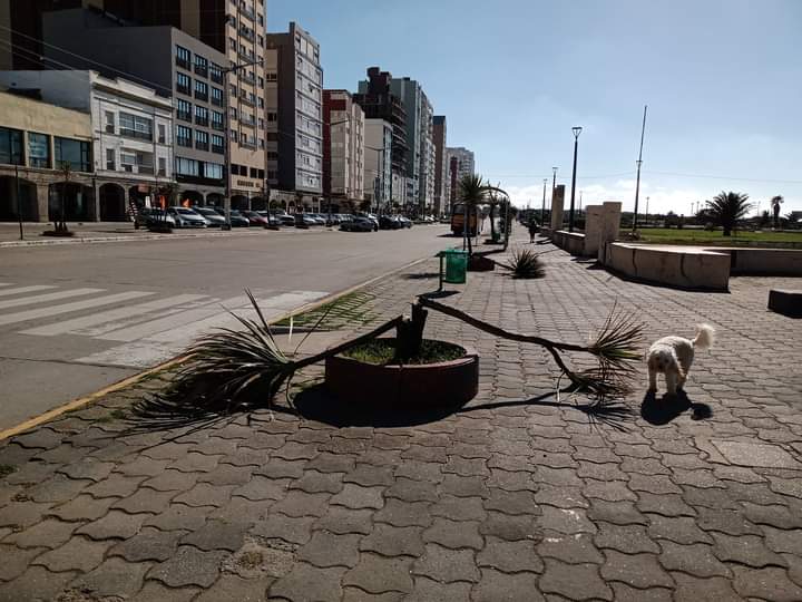 Mientras se lleva adelante la obra para embellecer el frente costero, un grupo de vándalos destrozó anoche las palmeras que están en los macetones de la avenida 2.