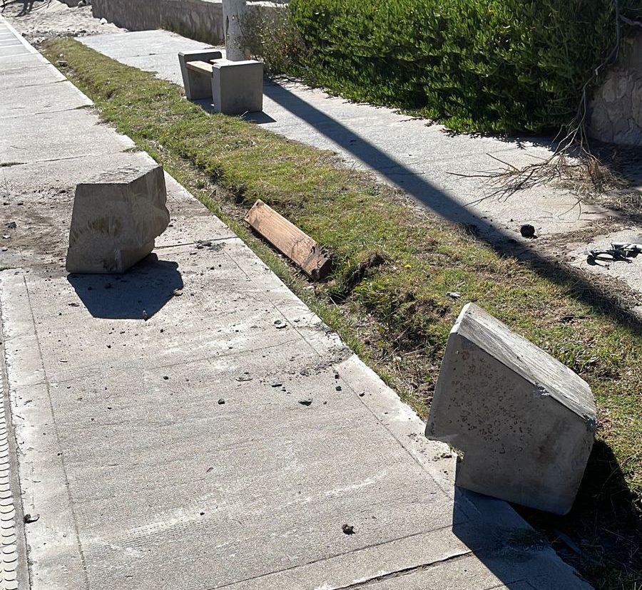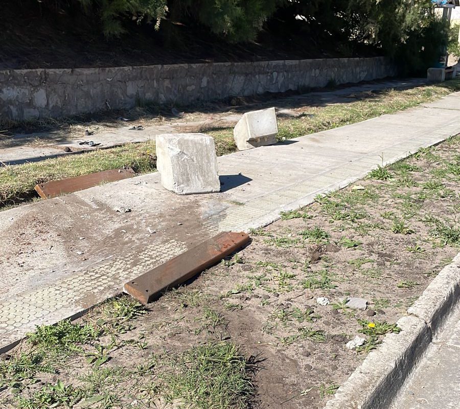 Vecinos denunciaron a TsnNecochea que anoche, un automovilista en aparente estado de ebriedad, chocó y destrozó parte del nuevo mobiliario de la avenida costanera de Quequén.