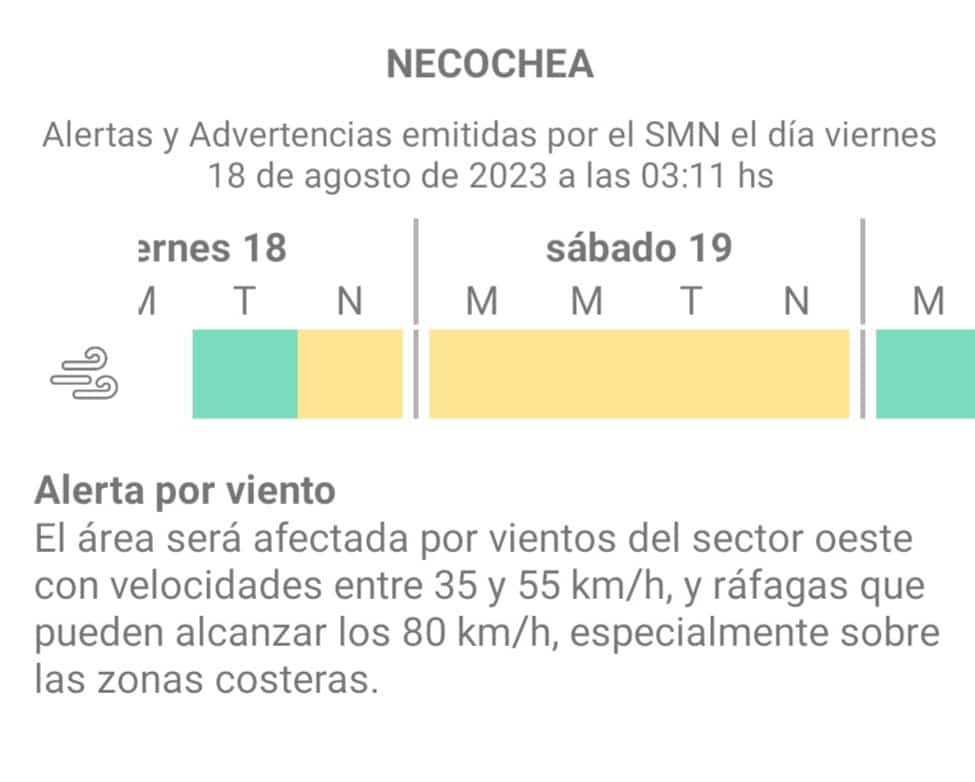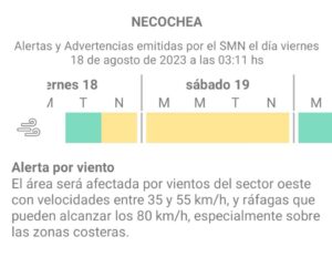 Ahora bien, para dentro de unas horas, el pronóstico indica que el área será afectada por vientos del sector oeste con velocidades entre 35 y 55 km/h, y ráfagas que pueden alcanzar los 80 km/h, especialmente sobre las zonas costeras.