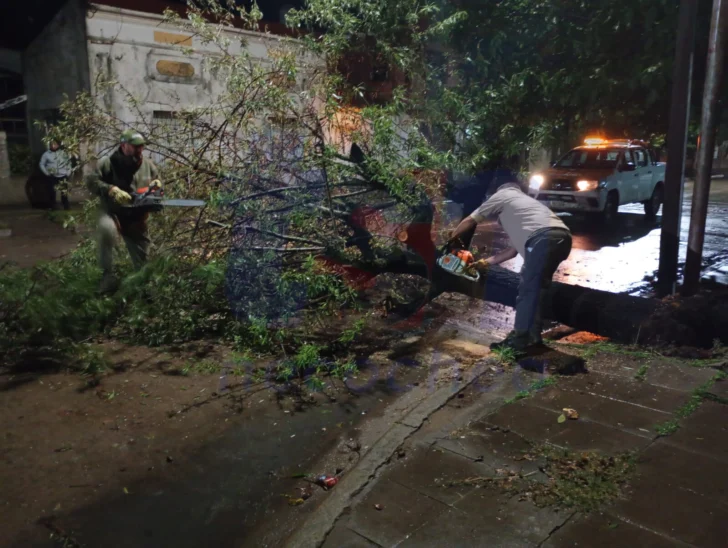 Hasta allí se acercaron integrantes de defensa Civil para intentar solucionar la situación retirando el tronco y las ramas del árbol
