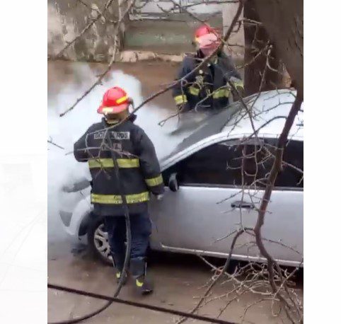 De inmediato, personal de bomberos del Cuartel Necochea llegó al lugar para controlar las llamas que habían tomado el motor del automóvil, un Ford Fiesta de color gris.