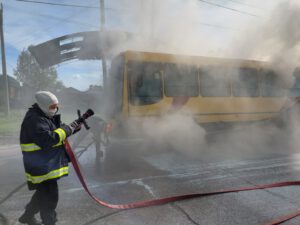 Un incendio en una unidad de la Compañía de Transportes Necochea se incendió este mediodía en calle 578 casi circunvalación, en Quequén.