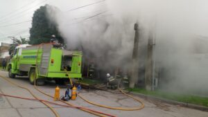 La cortina de humo era tan intensa que era imposible ingresar al lugar, es más varios bomberos debieron ser asistidos por lo que generaba el humo, en quienes trabajaban intensamente para apagar las llamas.
