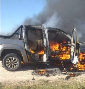 Una camioneta Volkswagen Amarok se incendio hace instantes cuando transitaba por Ruta 86. Según las primeras informaciones, hasta el lugar acudieron dotaciones de bomberos de la localidad de Benito Júarez.
