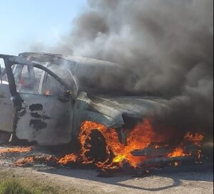 Las imágenes dan cuenta que el fuego destruyó por completo el vehículo.