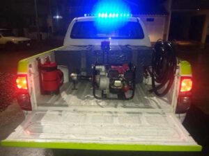 Un camión y una camioneta, a cargo del Jefe, Walter Bustamante, fueron al lugar y trabajaron arduamente para sofocar el fuego. A pesar de eso la vivienda fue afectada totalmente.