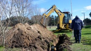 Este lunes se iniciaron los primeros movimientos para dotar de red cloacal a la zona del barrio Estación Quequén.
